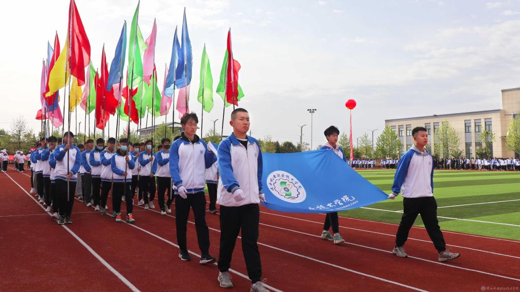 伴随着激情欢快的《运动员进行曲》,国旗方队、校旗方队、彩旗方队、裁判员方队、建党百年标志方队以及各二级学院方队依次入场,方队口号嘹亮、步伐整齐、精神抖擞,引来阵阵喝彩。
