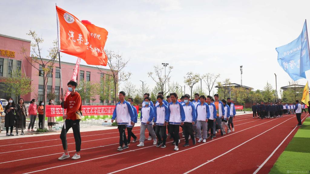 当前,陕西机电职业技术学院全校上下正在深入开展党史学习教育,使今年的春季运动会开幕式呈现出鲜明的党史学习教育成果,展现出昂扬奋进的精神风貌。学院一直以来大力开展阳光体育活动,隆重举办运动会,目的是引导广大同学“走下网络、走出宿舍、走向操场”,坚持“健康向上、不懈奋斗”的体育精神,使坚持体育锻炼成为青年大学生的生活方式和健康时尚。希望全体运动员赛出水平,赛出风格!以优异成绩迎接中国共产党成立100周年。