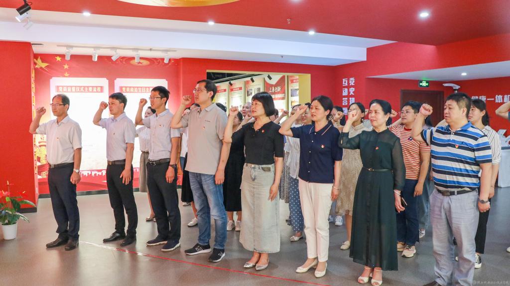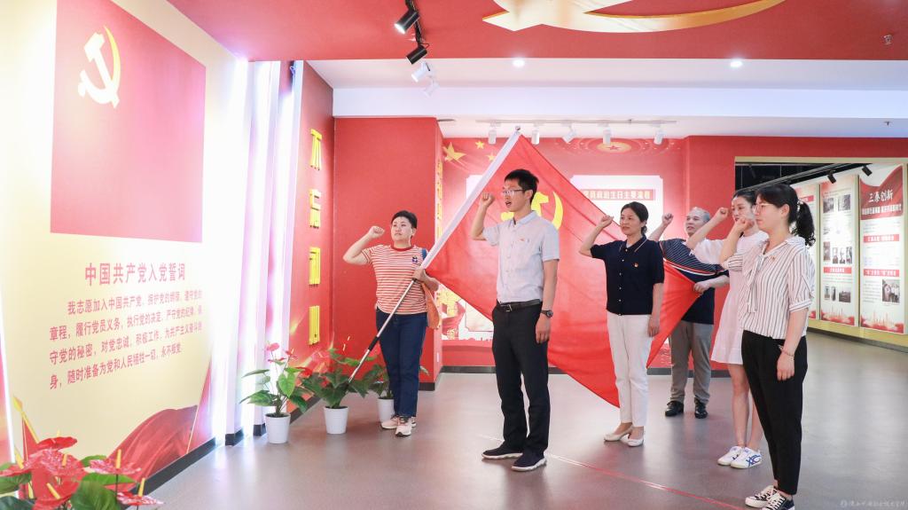 同时,党员们重温了入党誓词。在党旗下接受心灵的净化和洗礼,牢记共产党员的政治责任和历史使命,不断保持共产党员的先进性,以更加饱满的热情投身各自工作,切实发挥共产党员的先锋模范作用,永葆共产党员的政治本色。