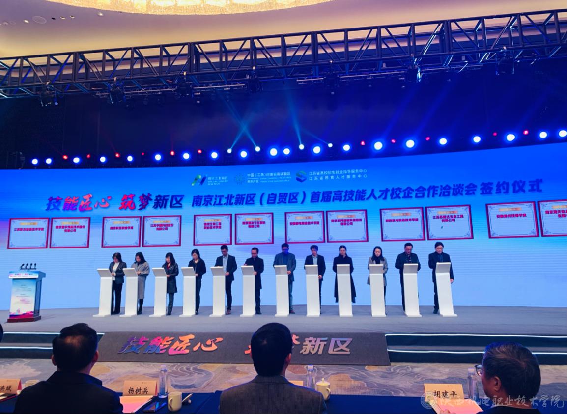 3月31日上午,张琴一行四人参加“技能匠心 筑梦新区”江北新区(自贸区)首届高技能人才校企合作洽谈会。江苏省教育厅副厅长、党组成员、省委教育工委委员杨树兵,江苏省人力资源和社会保障厅二级巡视员经洪斌,南京市人力资源和社会保障局党组书记、局长刘莅,以及省市相关部门负责同志应邀出席,江北新区党工委委员、管委会副主任林其坤参加,新区教育和社会保障党工委书记、局长郑武主持。